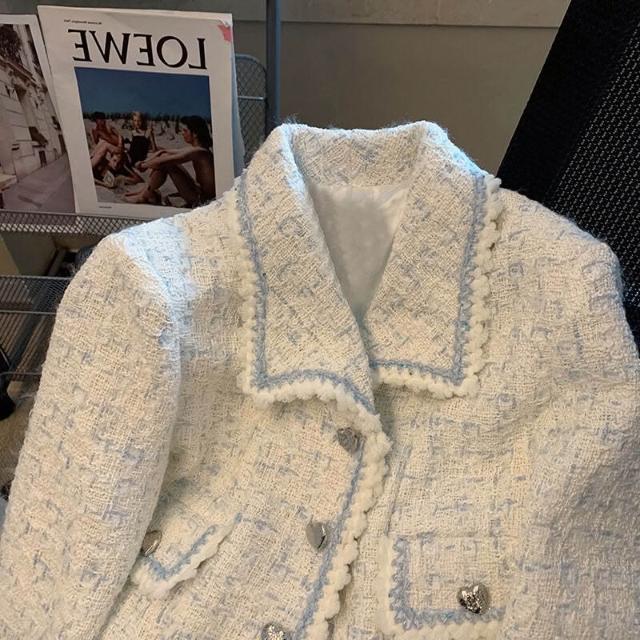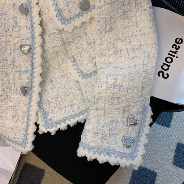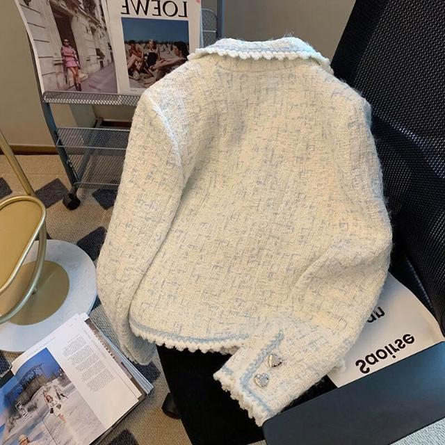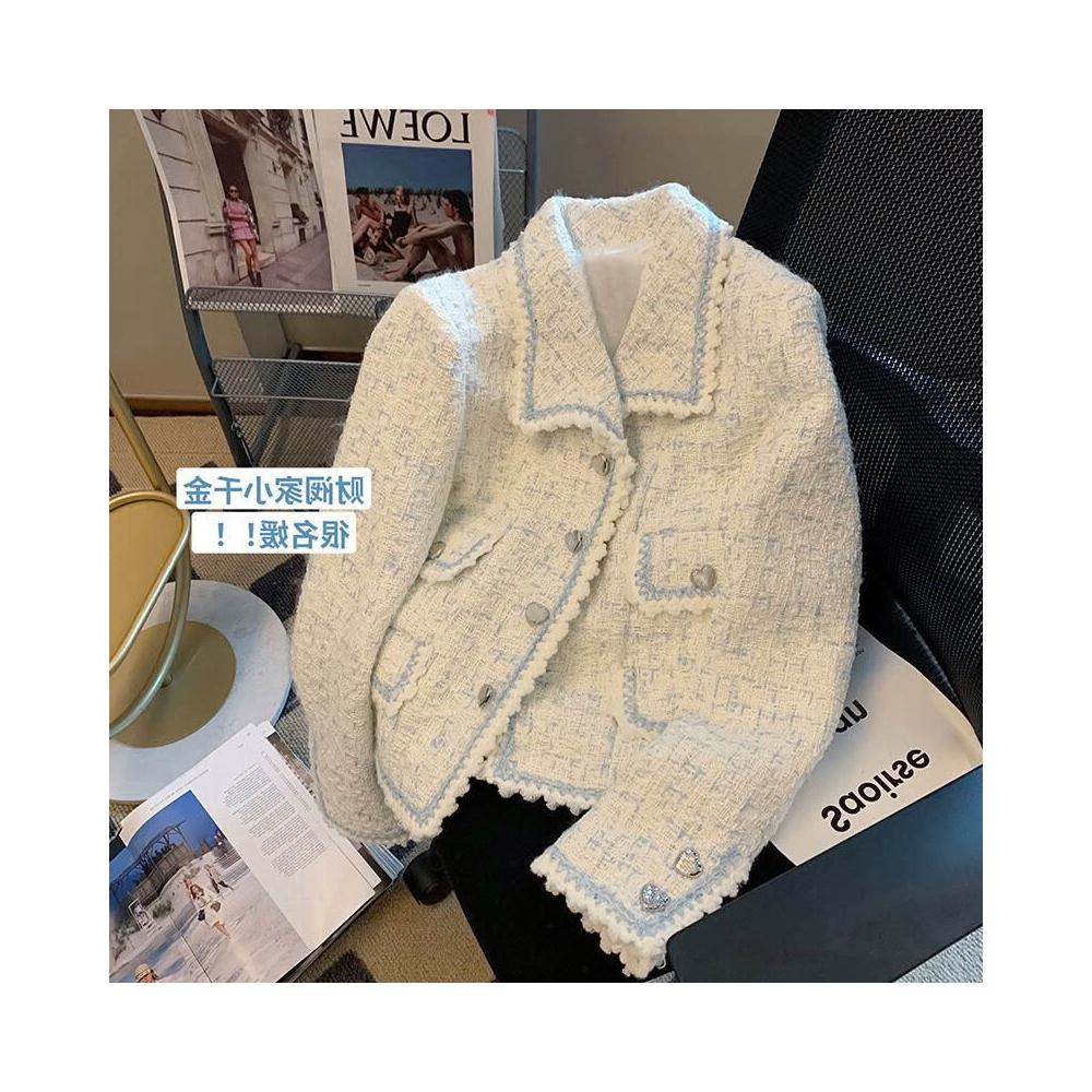 小香風外套女春秋高級感精致法式復古名媛氣質翻領粗花呢短款上衣