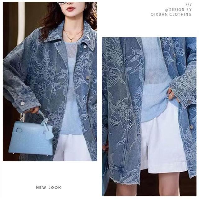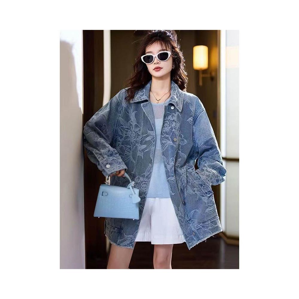 牛仔外套女2026春秋款素木氣質女裝滿印提花高級感時尚寬松外套潮
