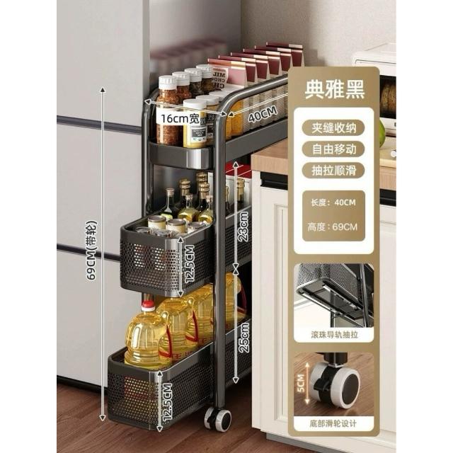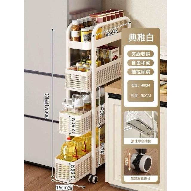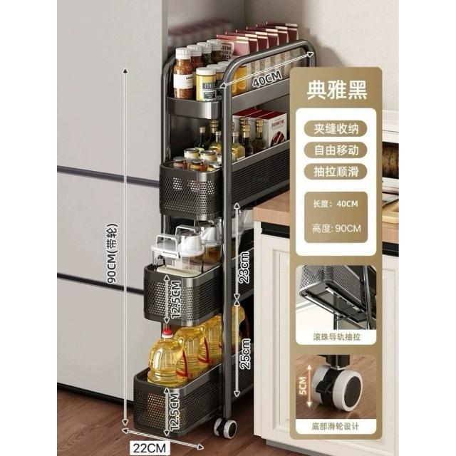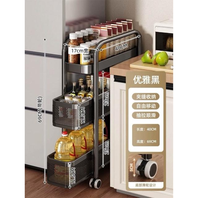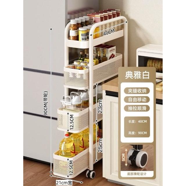家用窄縫置物架廚房落地多層夾縫收納架可抽拉超窄縫隙儲物小推車