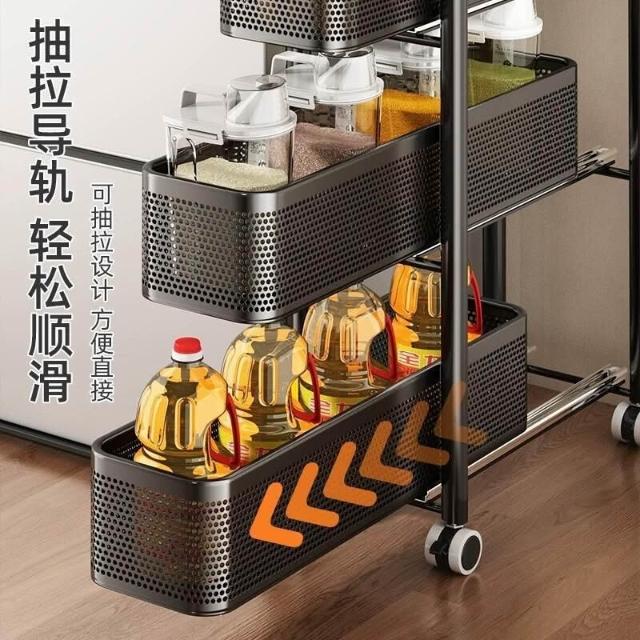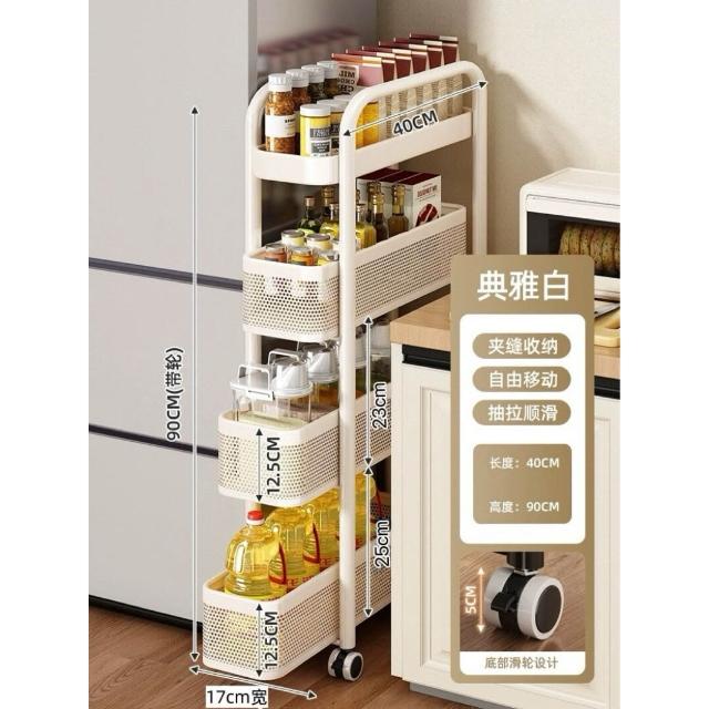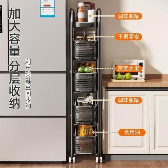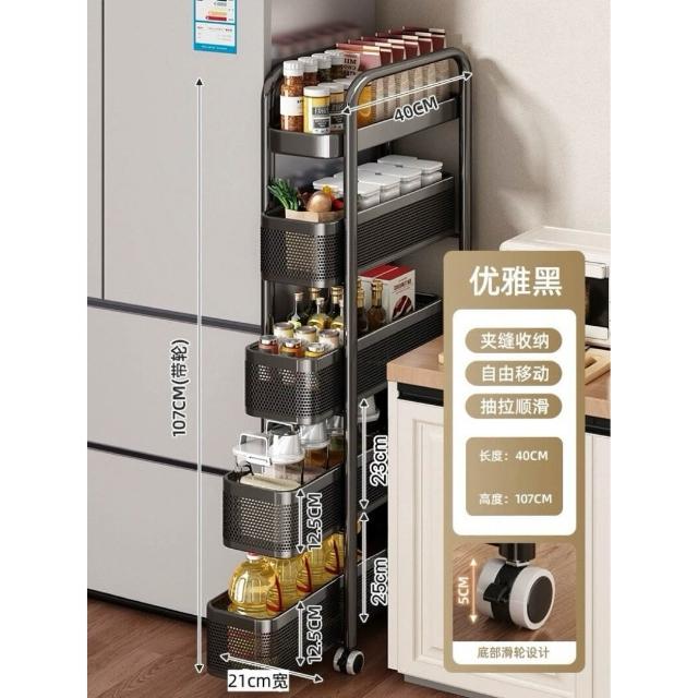 家用窄縫置物架廚房落地多層夾縫收納架可抽拉超窄縫隙儲物小推車