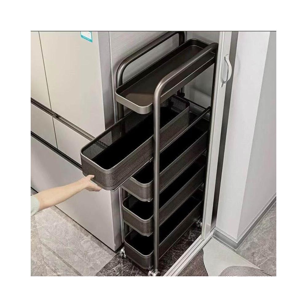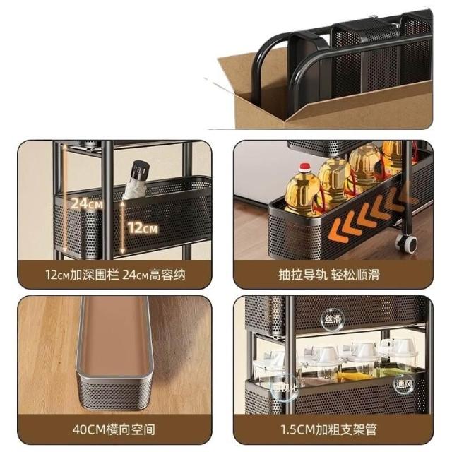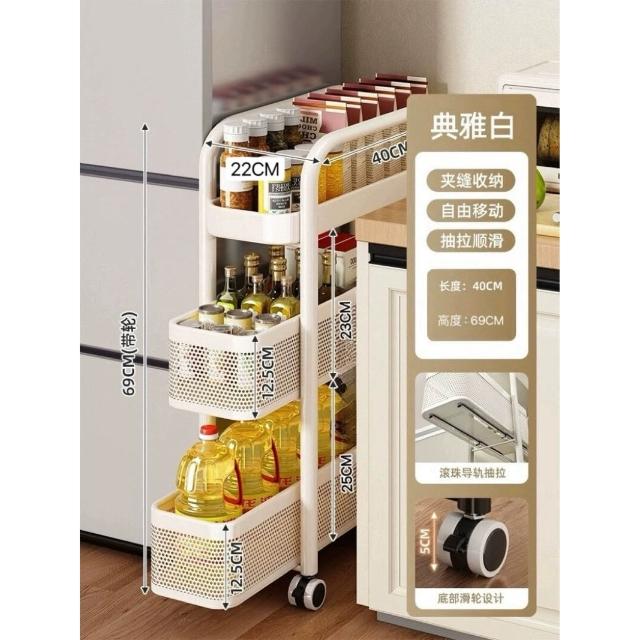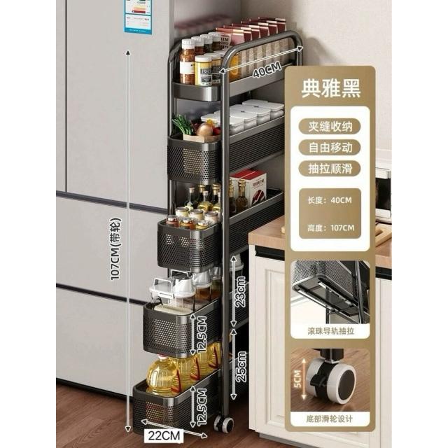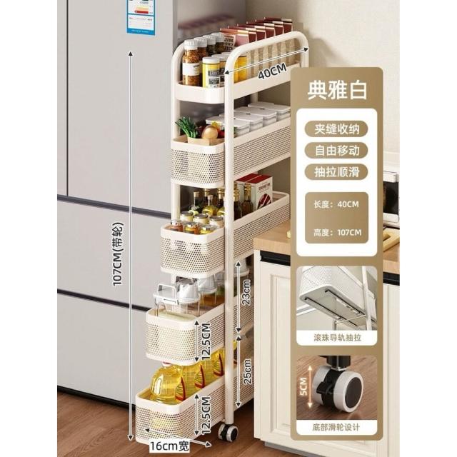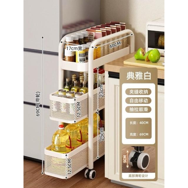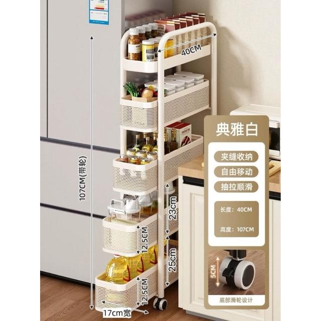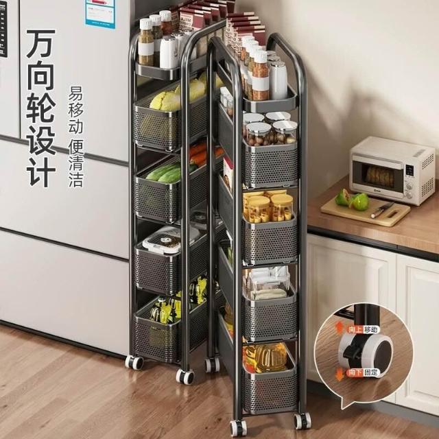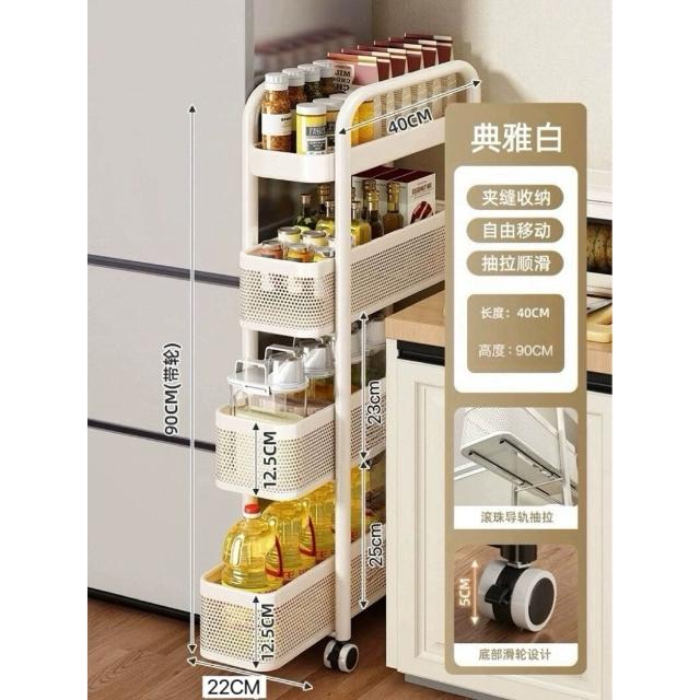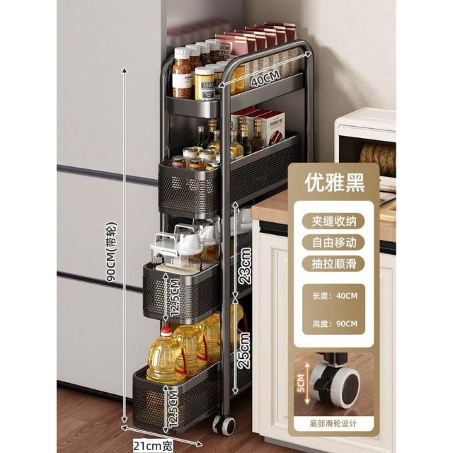 家用窄縫置物架廚房落地多層夾縫收納架可抽拉超窄縫隙儲物小推車