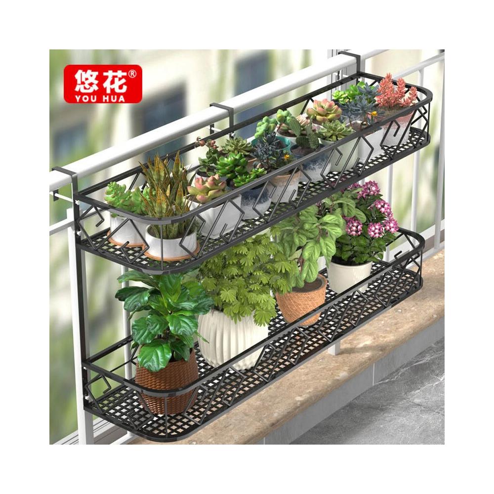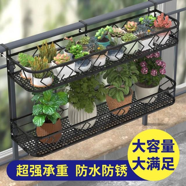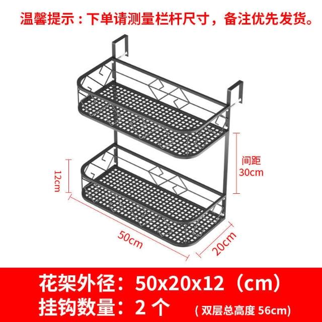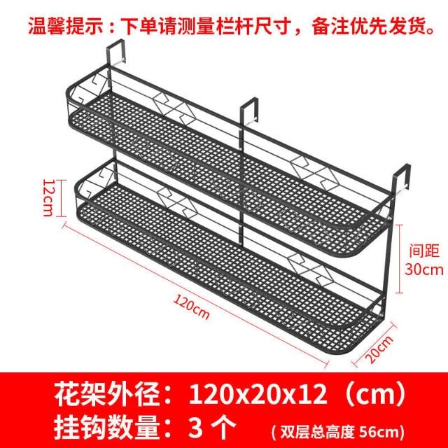 鐵藝雙層欄桿花架陽臺置物架花盆架室內鐵藝掛式花架子懸掛多肉花