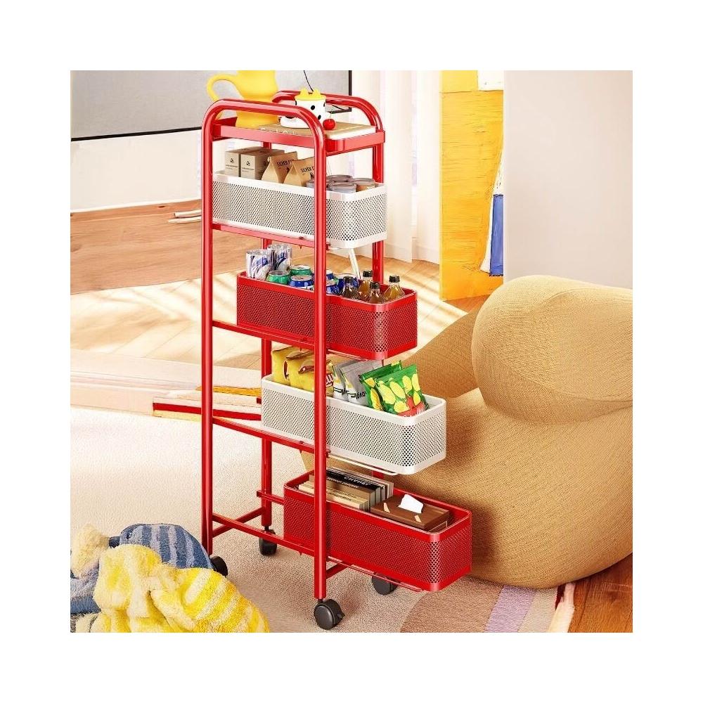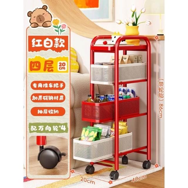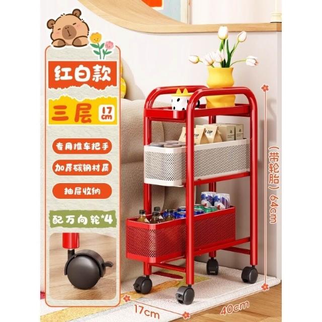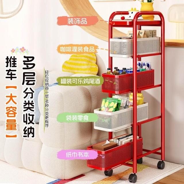 壹和軒家居 多巴胺零食夾縫小推車置物架客廳臥室窄縫多層收納儲物架子整理櫃