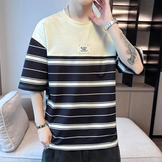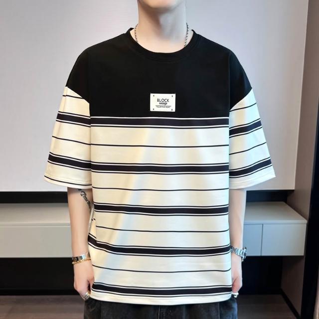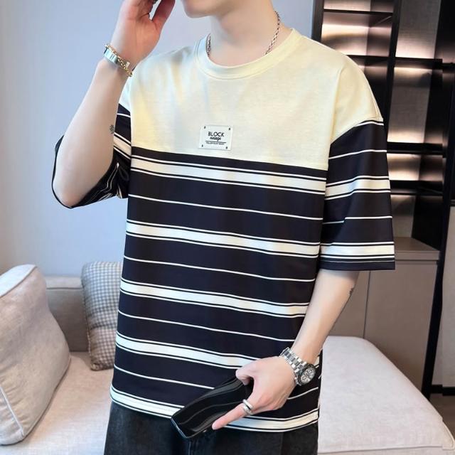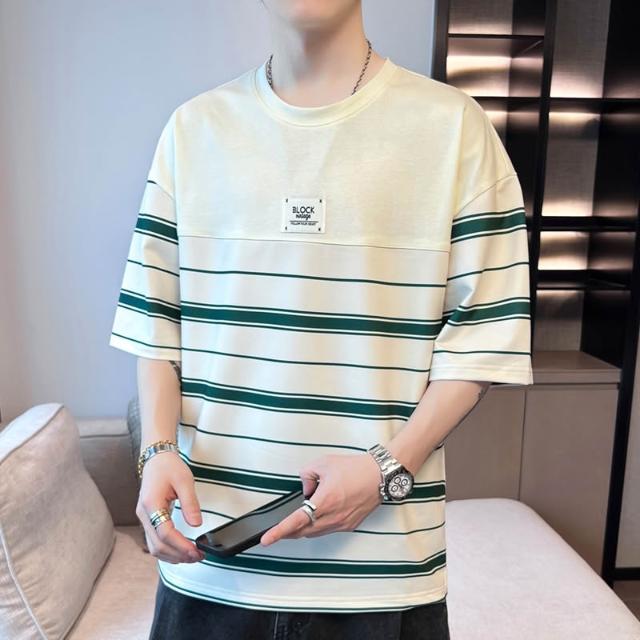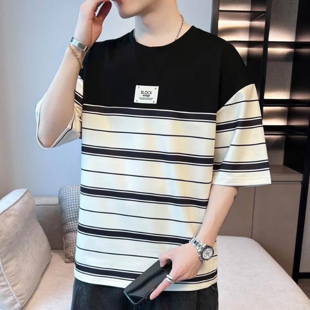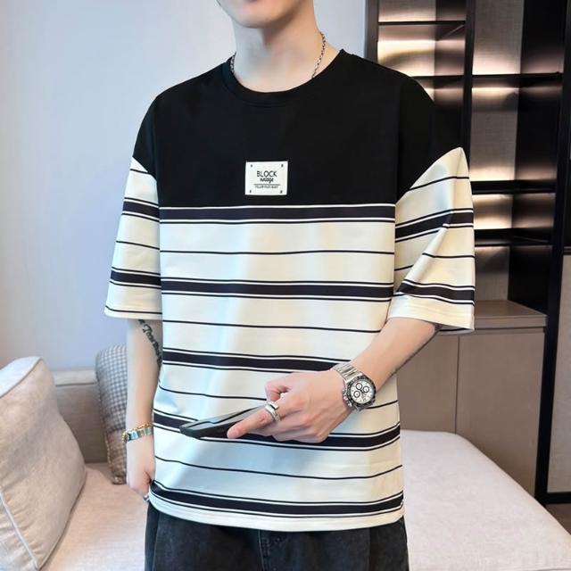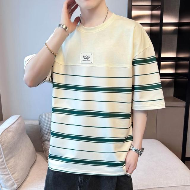 基礎經典款 四季內搭 新款夏季男士潮流寬松衣服潮牌學生短袖T恤上衣圓領五分袖半袖T恤 壹和軒