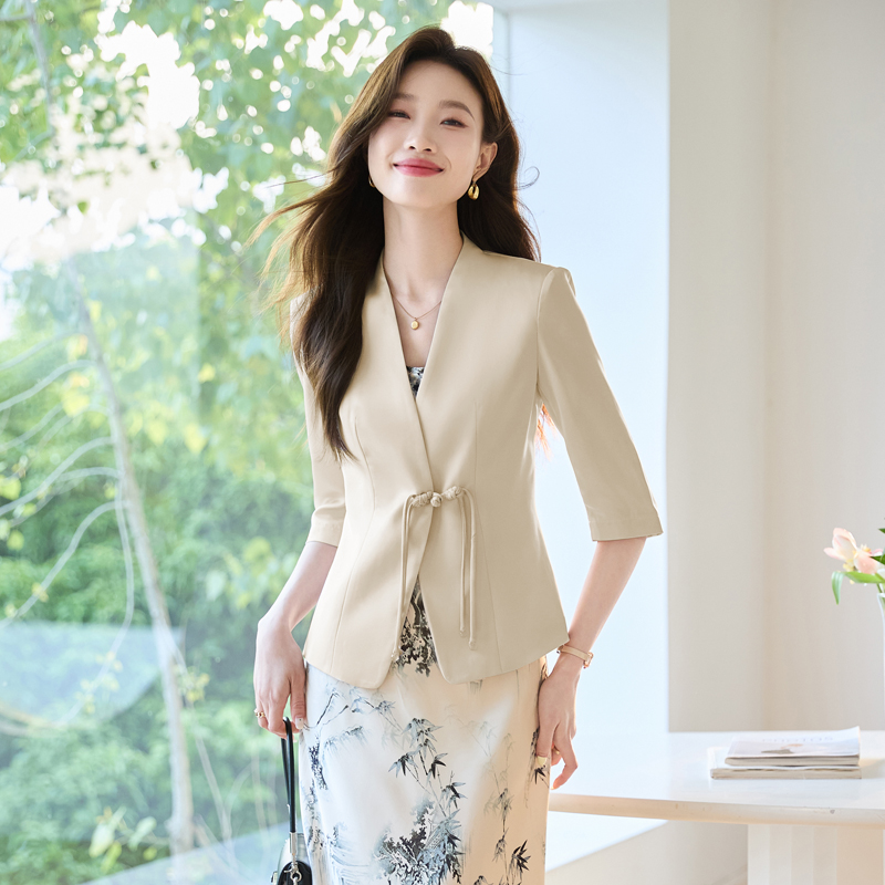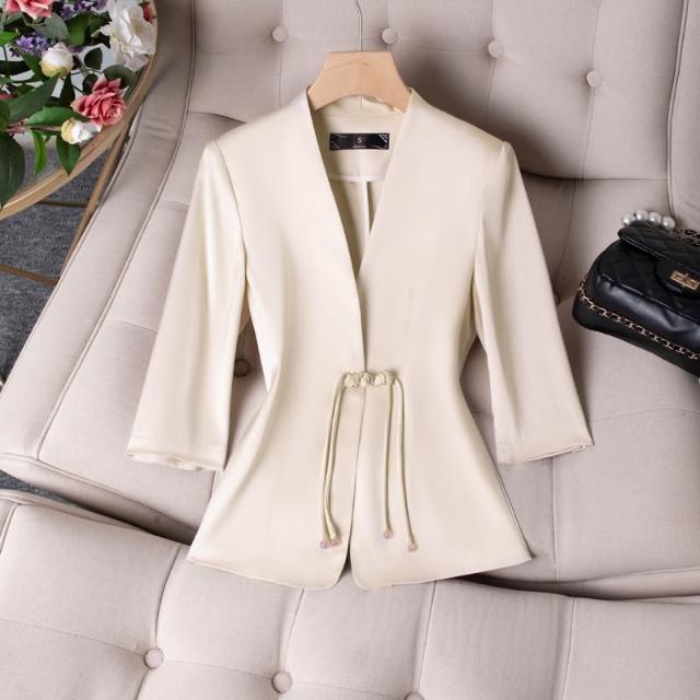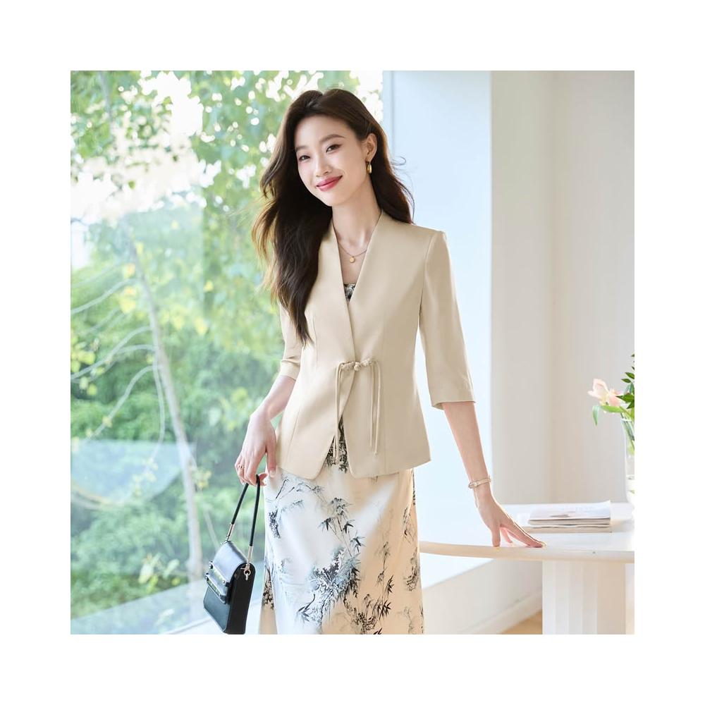 通勤休閒 百搭氣質外套 設計感中國風氣質西裝外套女夏季新款休閑七分袖時尚V領小西服潮 壹和軒