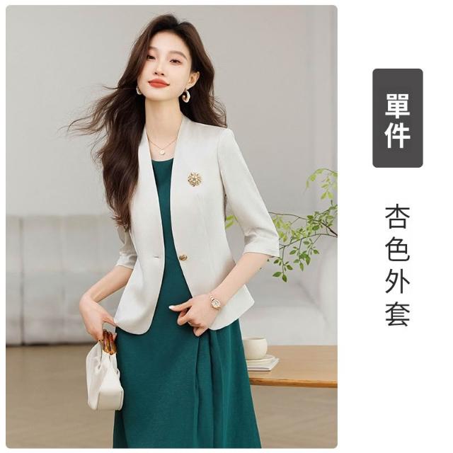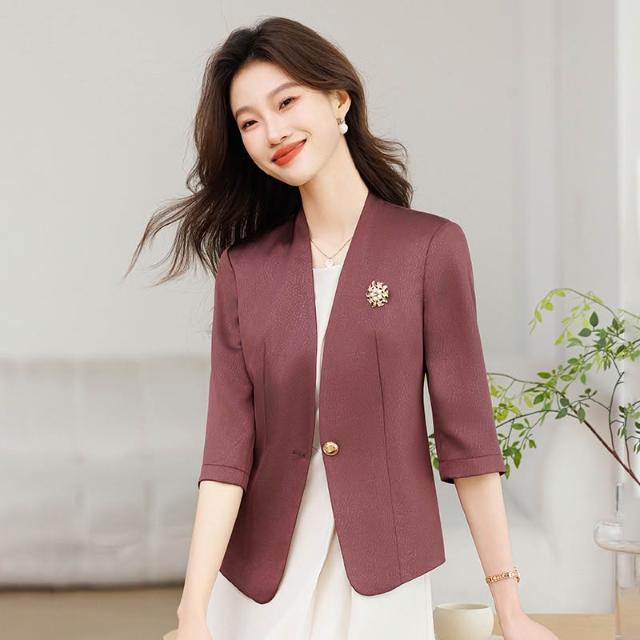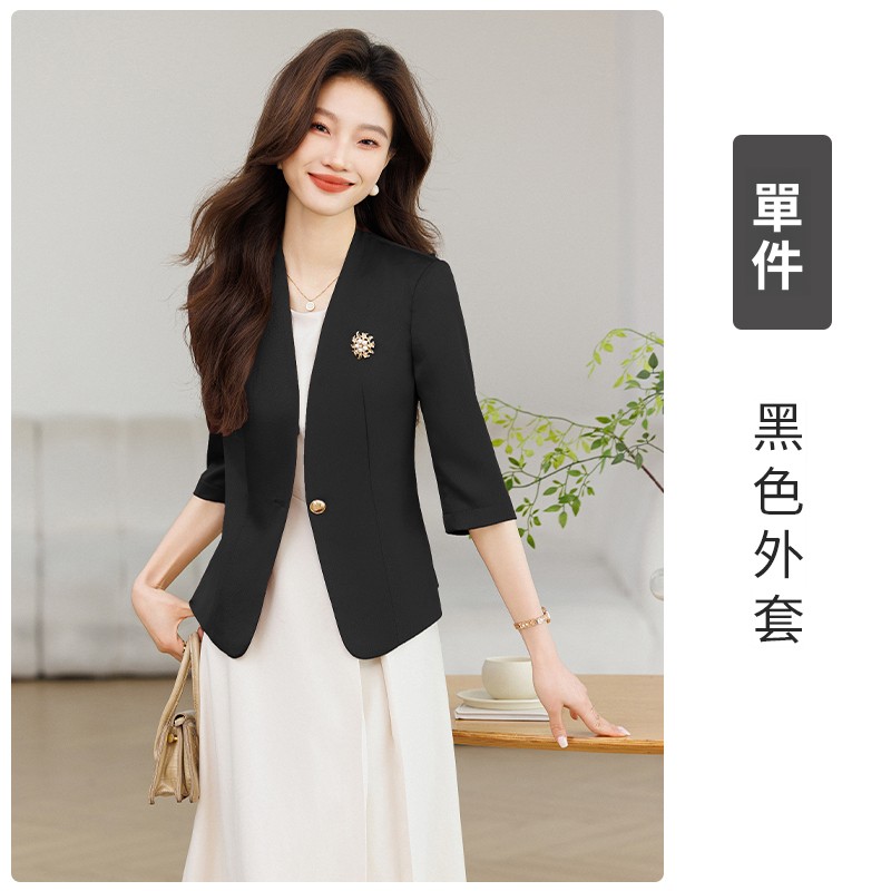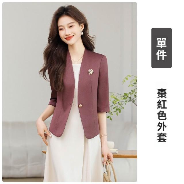 通勤休閒 百搭氣質外套 時尚氣質七分袖無領V領西裝外套女夏季新款休閑名媛淑女小西服潮 壹和軒