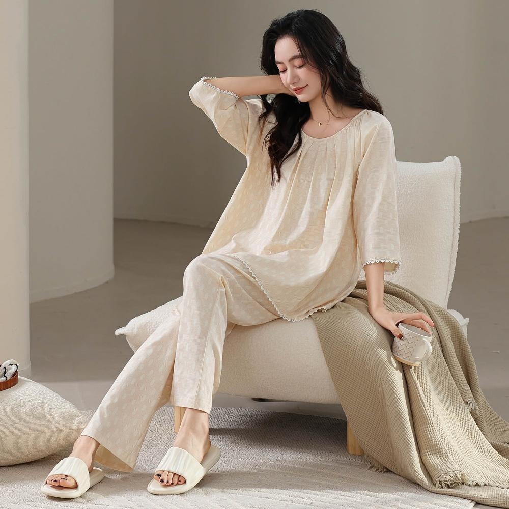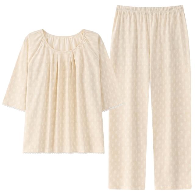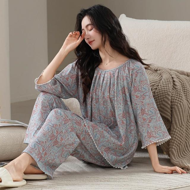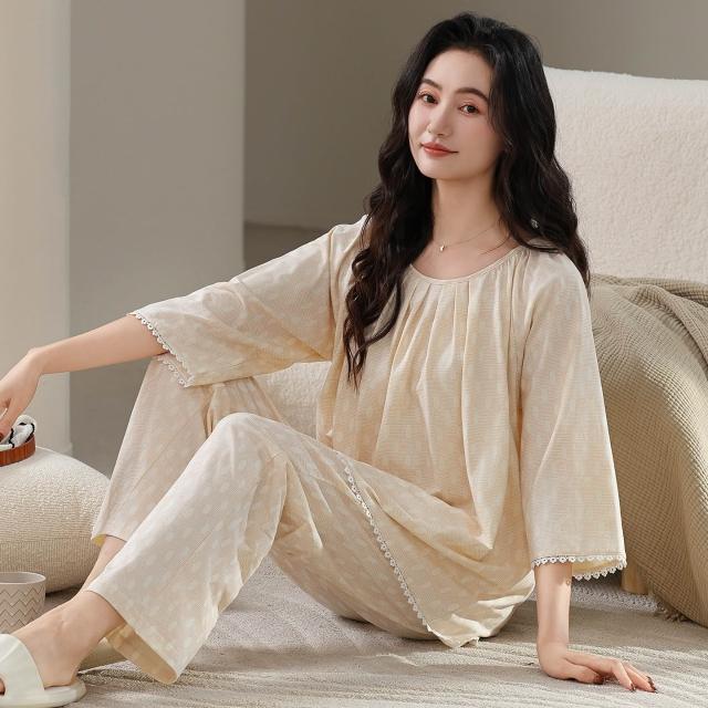 睡衣套裝 夏季睡衣 睡衣女春夏季純棉新款七分袖長褲7A抗菌防螨休閑舒適家居服套裝 壹和軒