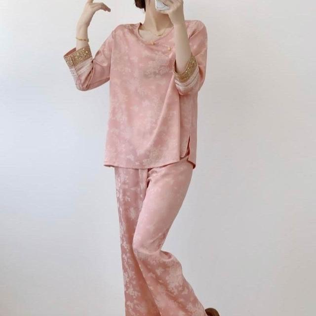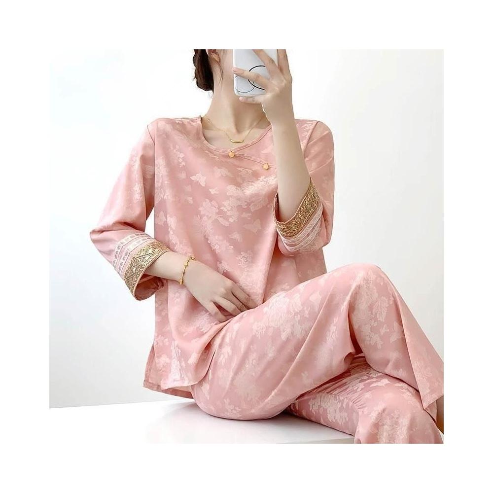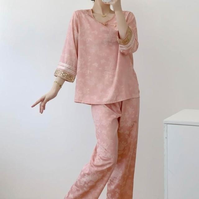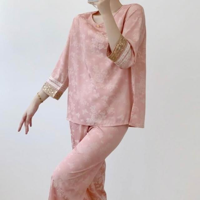 睡衣套裝 夏季睡衣 2026中國風睡衣女春夏季冰絲提花薄款新中式民族風編織刺繡家居服 壹和軒
