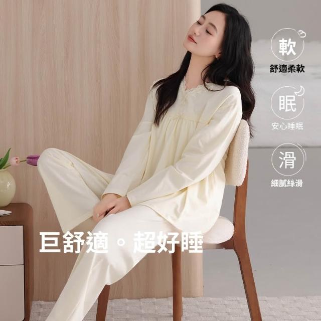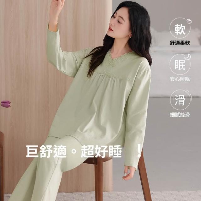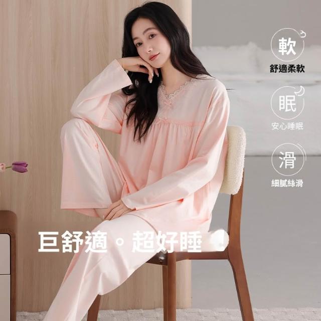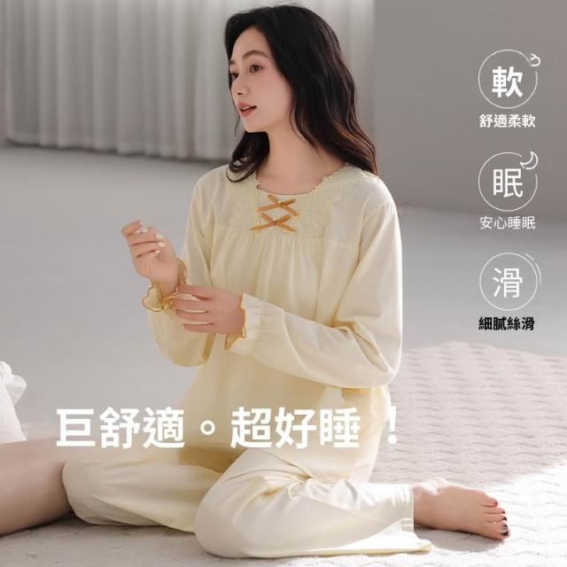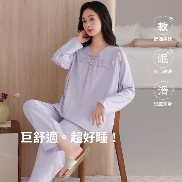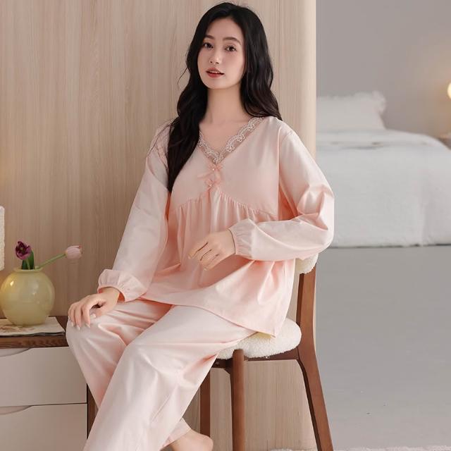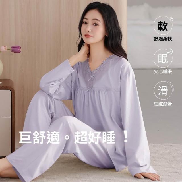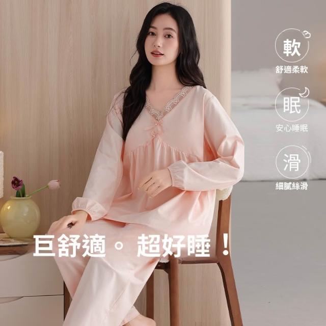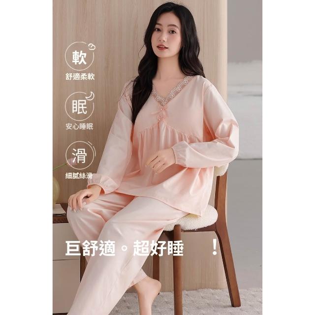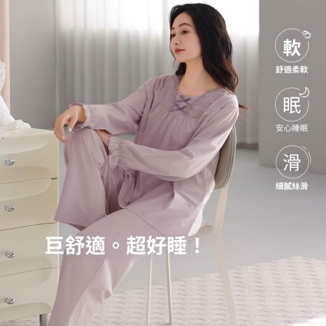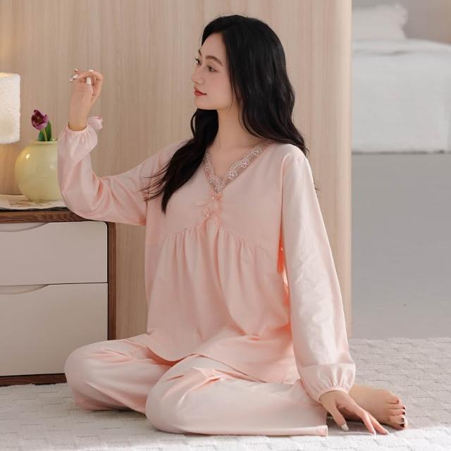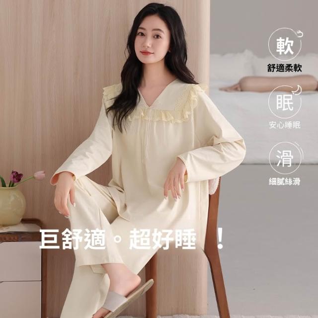 睡衣套裝 夏季睡衣 舒亭樹春夏季薄款女純棉拉架宮廷風優雅長袖蕾絲花邊家居服睡衣套 壹和軒