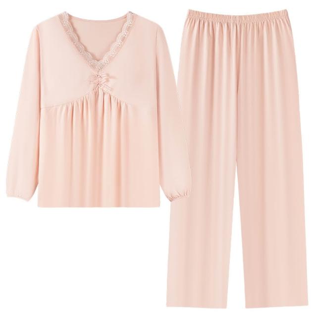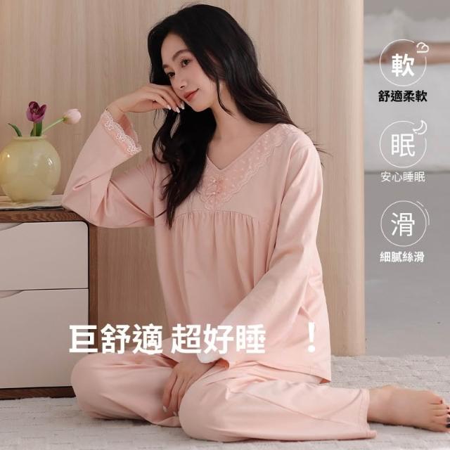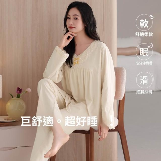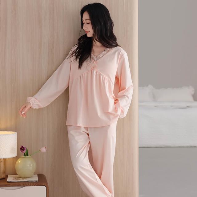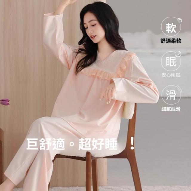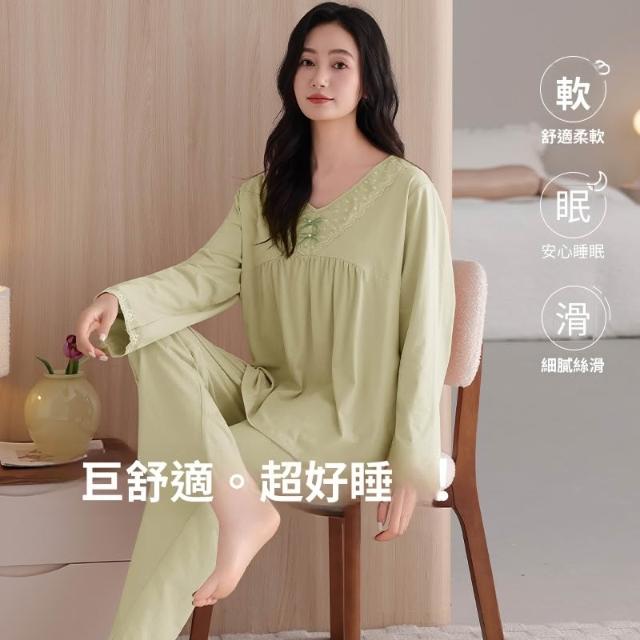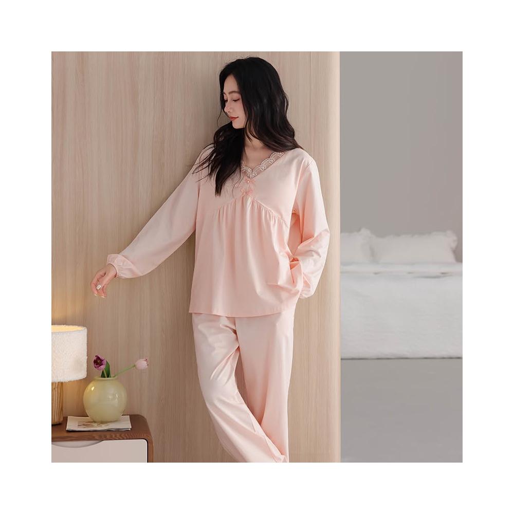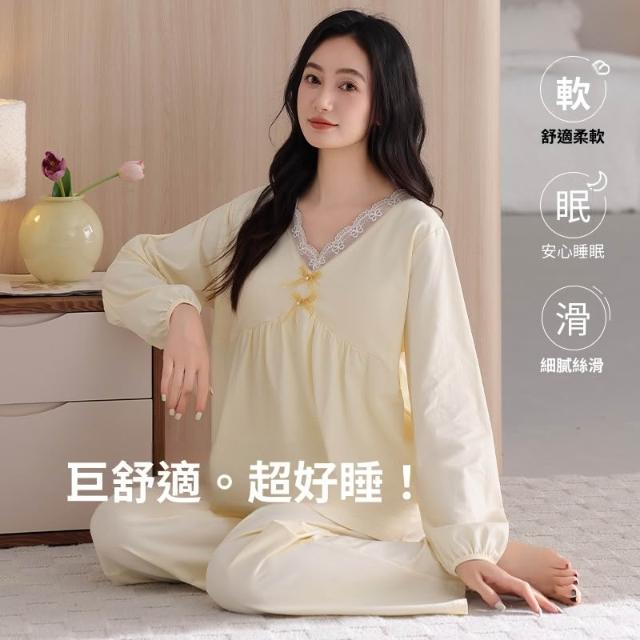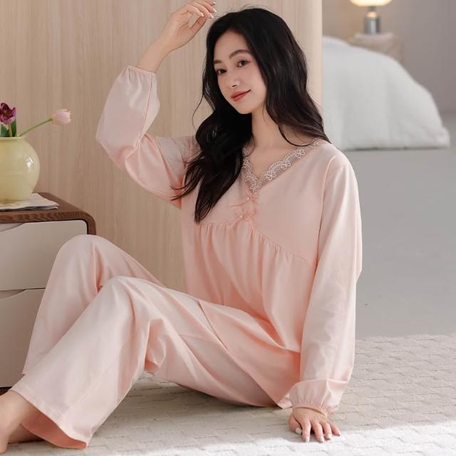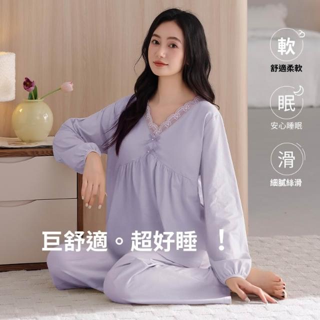 睡衣套裝 夏季睡衣 舒亭樹春夏季薄款女純棉拉架宮廷風優雅長袖蕾絲花邊家居服睡衣套 壹和軒