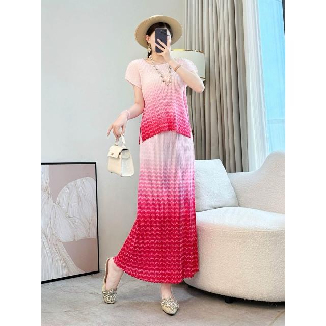 大碼連衣裙 顯瘦長裙 漸變色褶皺套裝裙女夏季媽媽2025新款高端氣質休閑穿搭裙子兩件套 壹和軒