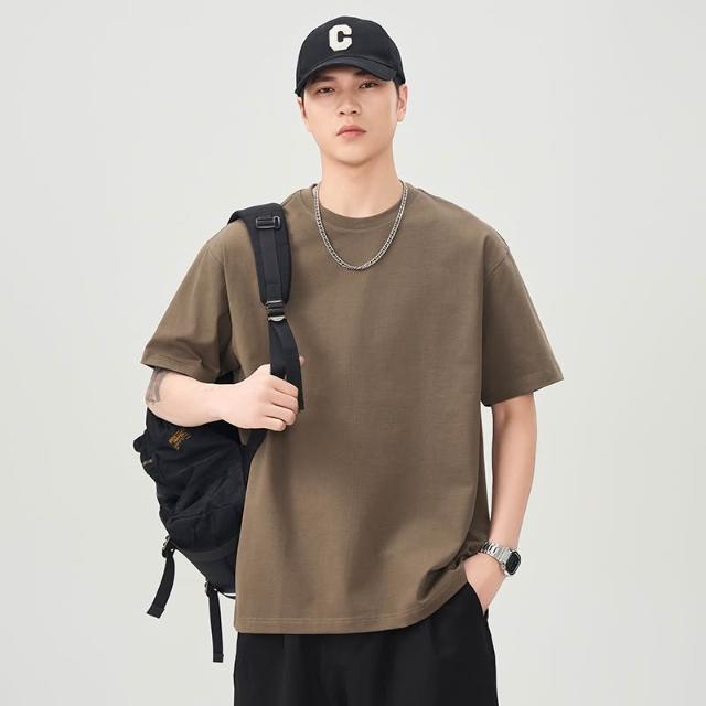 男士短袖 涼感短袖 300克重磅純棉短袖T恤純色凈版男夏季新款寬松大碼休閑落肩體恤 壹和軒