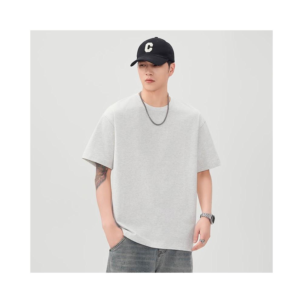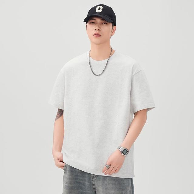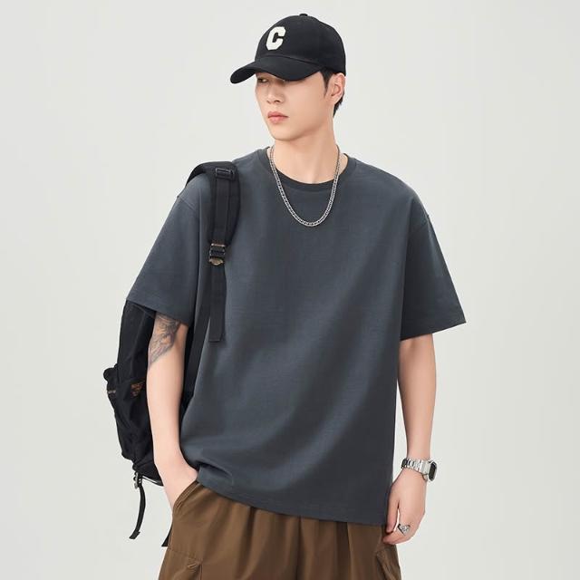 男士短袖 涼感短袖 300克重磅純棉短袖T恤純色凈版男夏季新款寬松大碼休閑落肩體恤 壹和軒