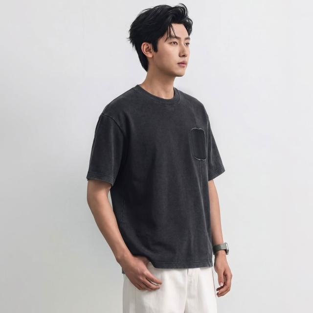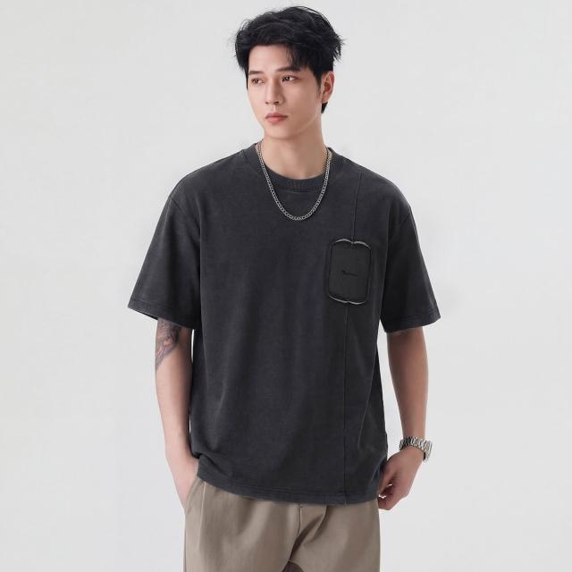 男士短袖 涼感短袖 重磅復古水洗做舊短袖t恤男士26年夏季款美式印花阿美咔叽男上衣 壹和軒