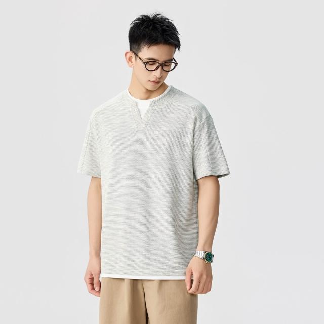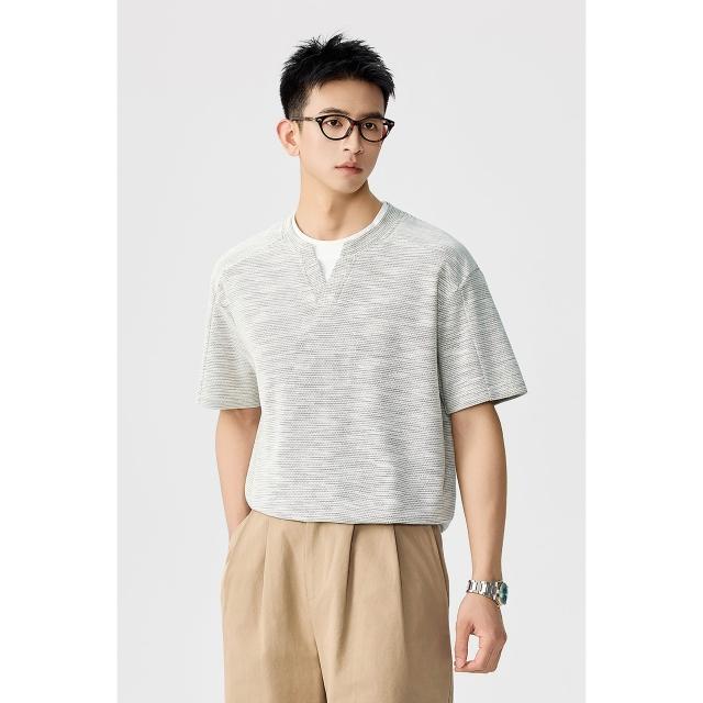 男士短袖 涼感短袖 老錢風v領假兩件短袖t恤男 含稅價格:58.7 壹和軒