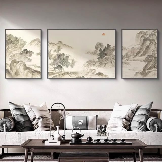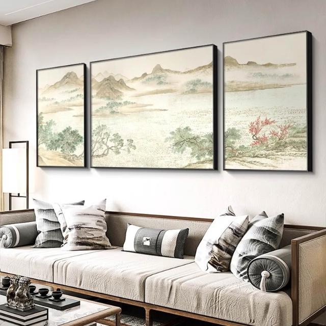 掛畫 玄關 客廳 新中式客廳裝飾畫沙發背景墻山水風景掛畫湖山春暖圖茶室新款壁畫 壹和軒