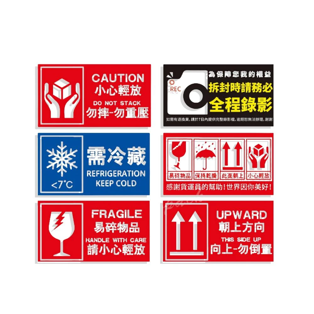 好包佳出貨貼紙 易碎品/開箱錄影/需冷藏/小心輕放/勿重壓