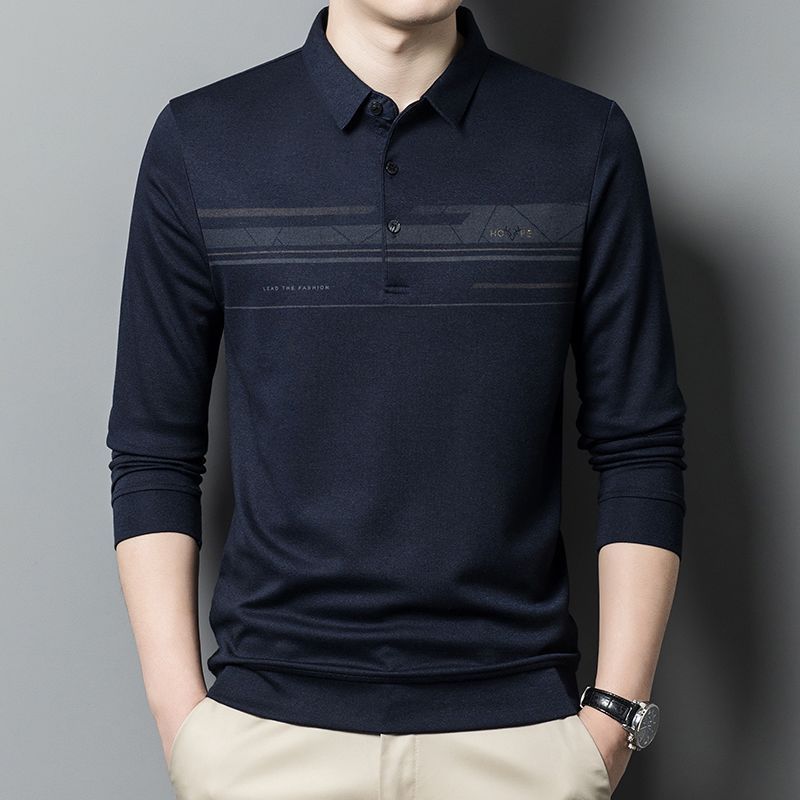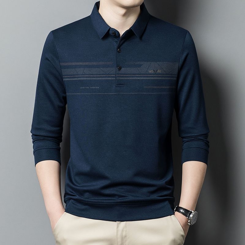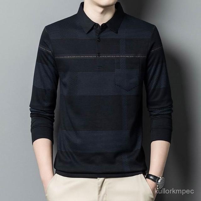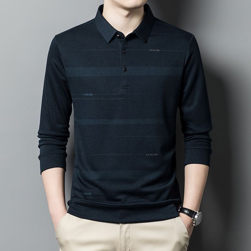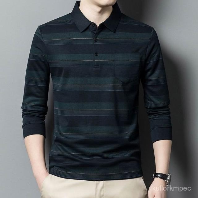 臺灣中老年爸爸裝男士條紋長袖t恤40嵗50中年春秋季上衣服打底polo衫