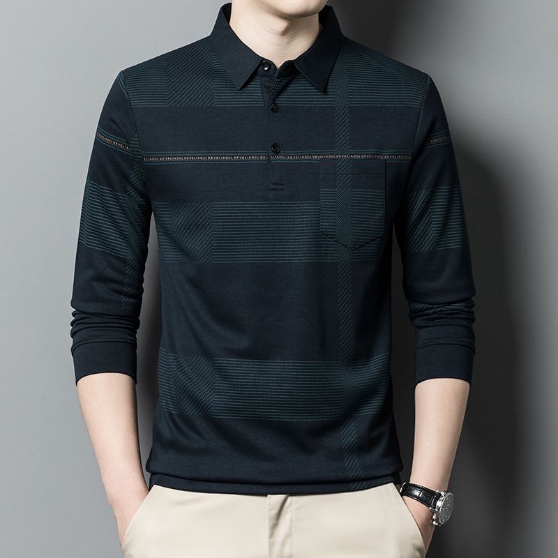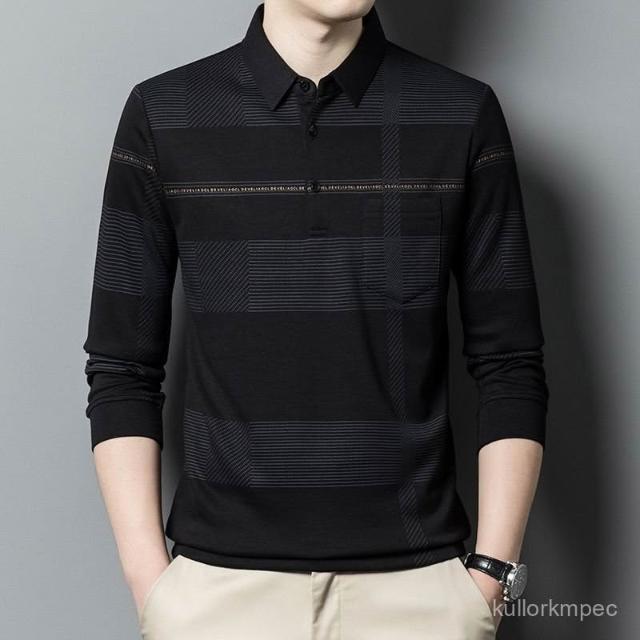 臺灣中老年爸爸裝男士條紋長袖t恤40嵗50中年春秋季上衣服打底polo衫