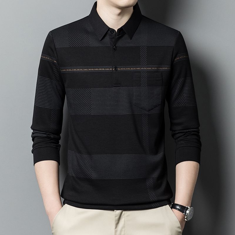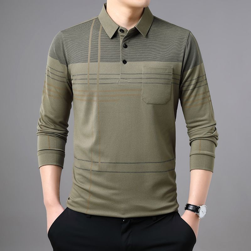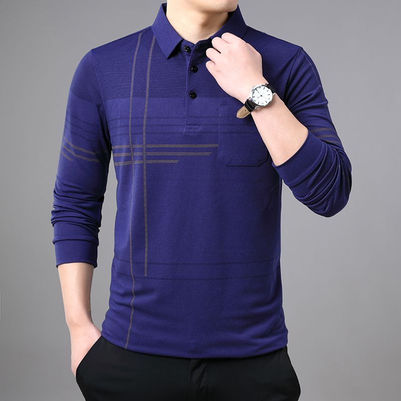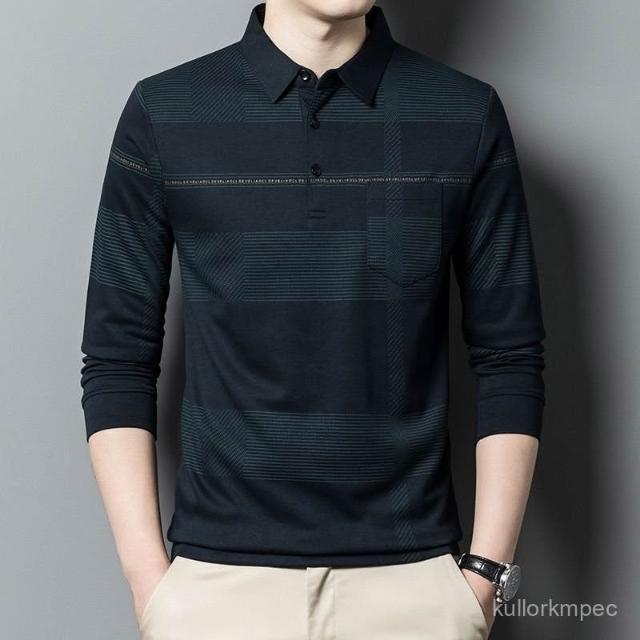 臺灣中老年爸爸裝男士條紋長袖t恤40嵗50中年春秋季上衣服打底polo衫