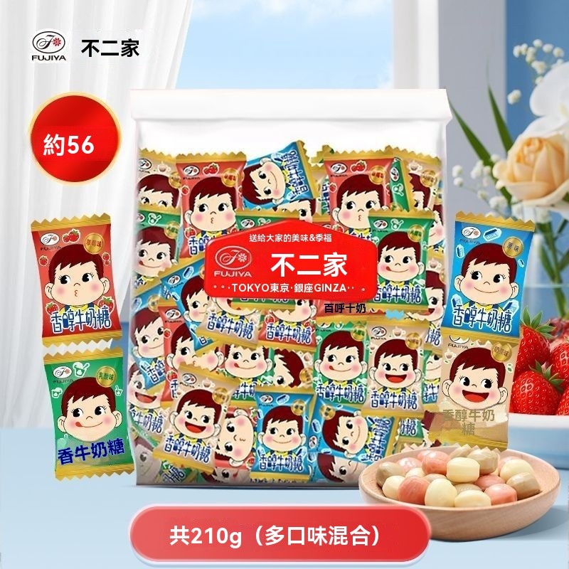 熱賣中熱賣不二家香醇牛奶糖210g/56顆糖果喜糖婚糖批發踏青季兒童零食禮物