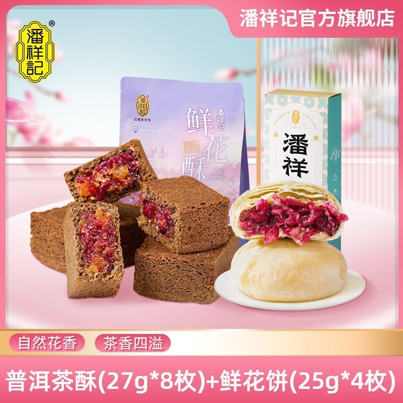 熱賣中潘祥記玫瑰酥鮮花餅216g普洱茶玫瑰夾心糕點早餐零食禮袋
