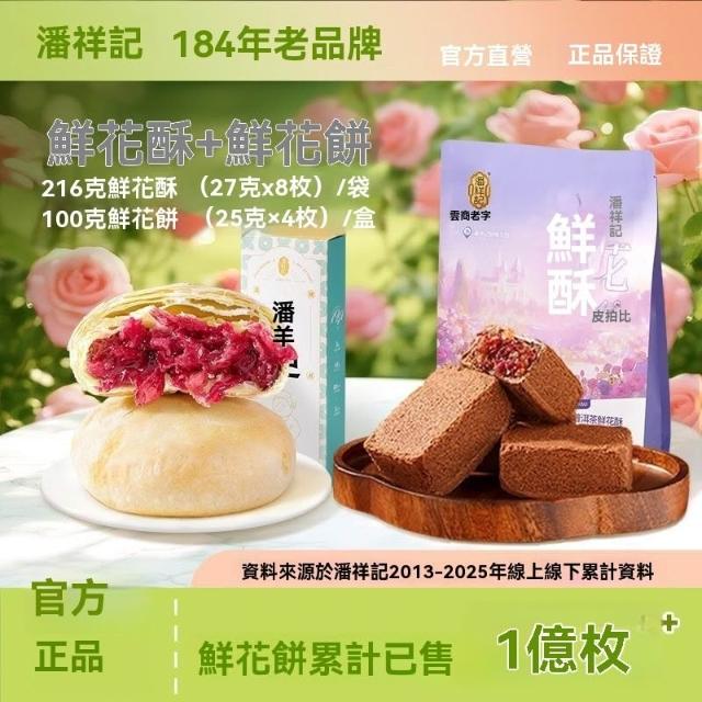 熱賣中潘祥記玫瑰酥鮮花餅216g普洱茶玫瑰夾心糕點早餐零食禮袋