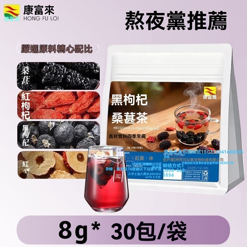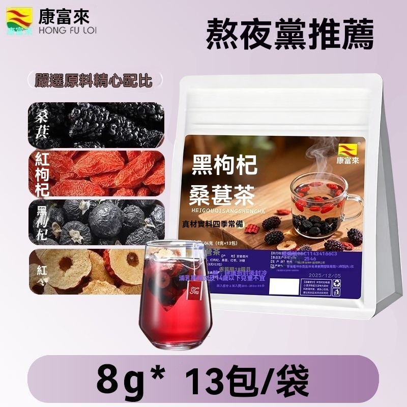 熱賣中【熬夜黨推薦】康富來黑枸杞桑葚紅棗養生茶體虛熬夜男女代用茶
