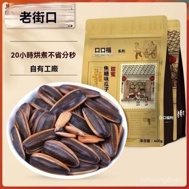 熱賣中 老街口 焦糖/五香味瓜子400g*2袋大顆粒葵花籽炒貨堅果2025新貨