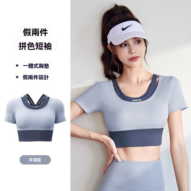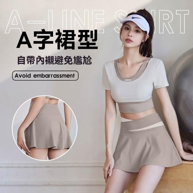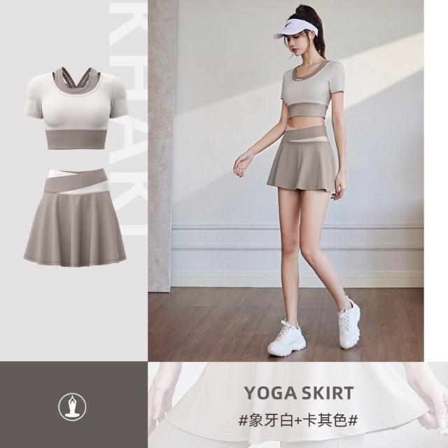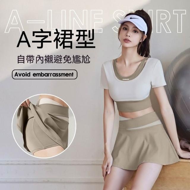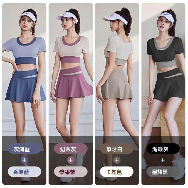 新款瑜伽服套裝女款短袖運動套速幹短裙跑步套裝泳衣健身緊身舞蹈