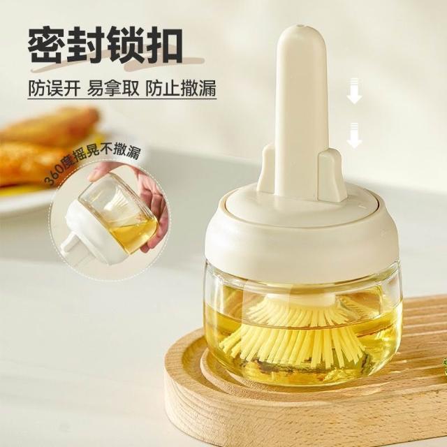 密封款油刷油瓶一體玻璃油刷壺食品級硅膠刷油刷子耐高溫燒烤刷子
