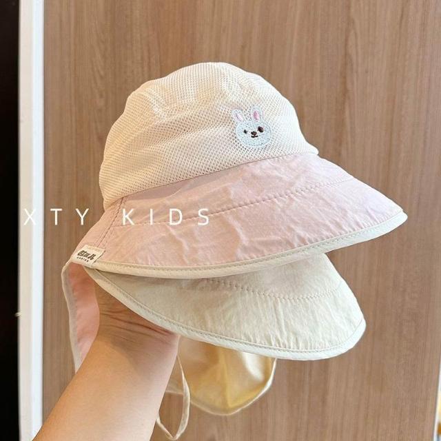 寶寶防曬帽子夏季大檐披肩嬰兒遮陽帽戶外全網小熊速乾兒童漁夫帽