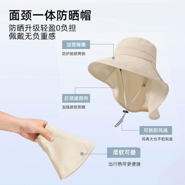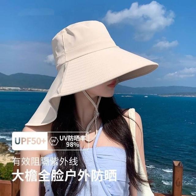 新款太陽帽女夏季防曬遮陽帽護頸遮臉漁夫帽防紫外線頭部防護帽子