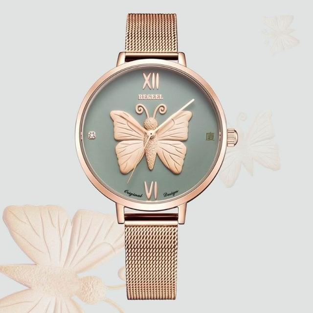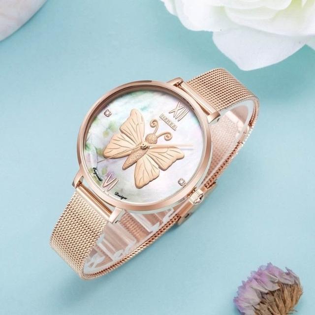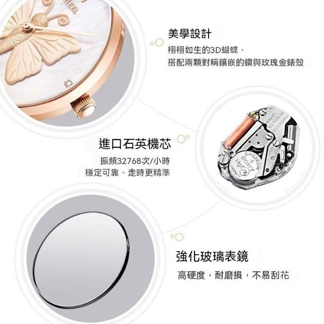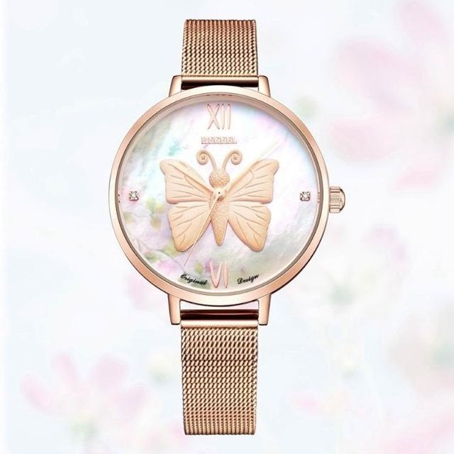 滿意優選【品牌正品】瑞士賓爵時尚女士石英手錶玫瑰金蝴蝶貝母錶盤送禮物