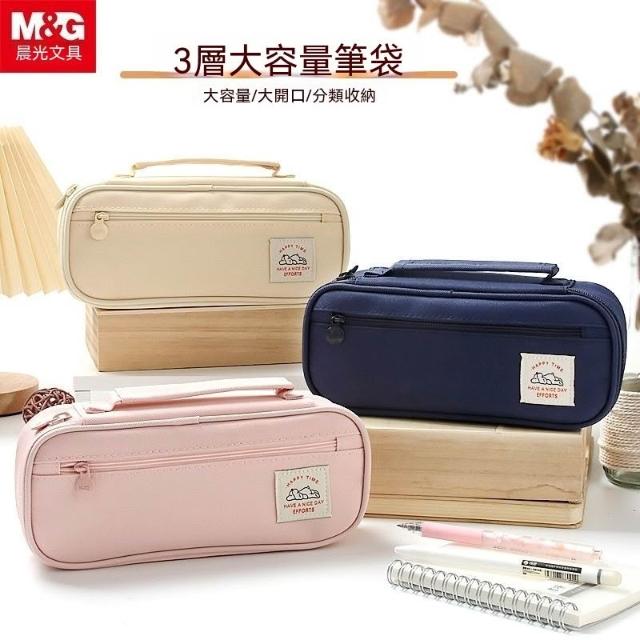 [晨光]簡約純色多層筆袋筆盒牛津佈防水鉛筆袋鉛筆盒女生筆袋大容量