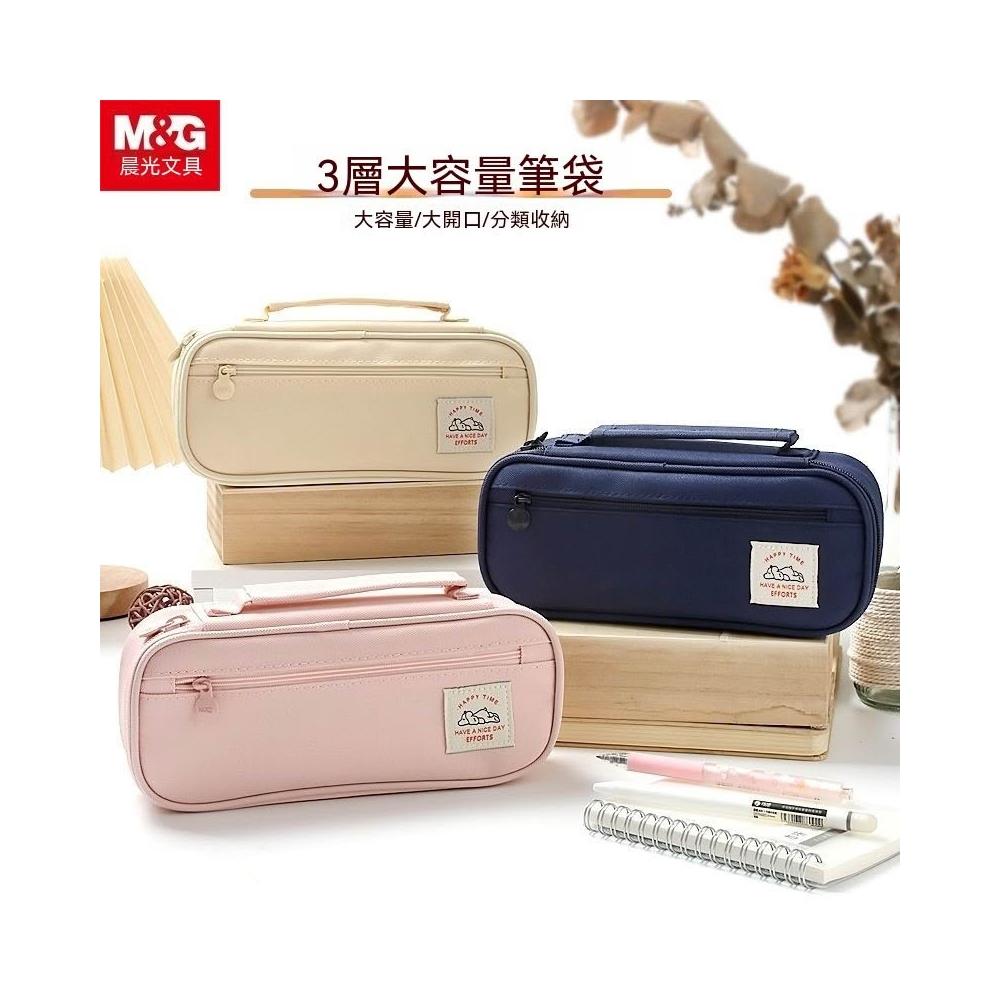 [晨光]簡約純色多層筆袋筆盒牛津佈防水鉛筆袋鉛筆盒女生筆袋大容量