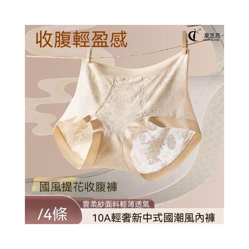 國風浮雕繡花新中式高腰加長桑蠶絲底襠全包臀小平角內褲女