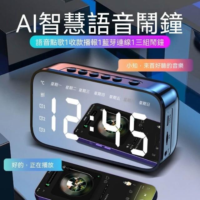 滿意優選【強力叫醒】學生鬧鐘藍牙音箱鏡面時鐘起牀神器插卡可充電鬧鈴