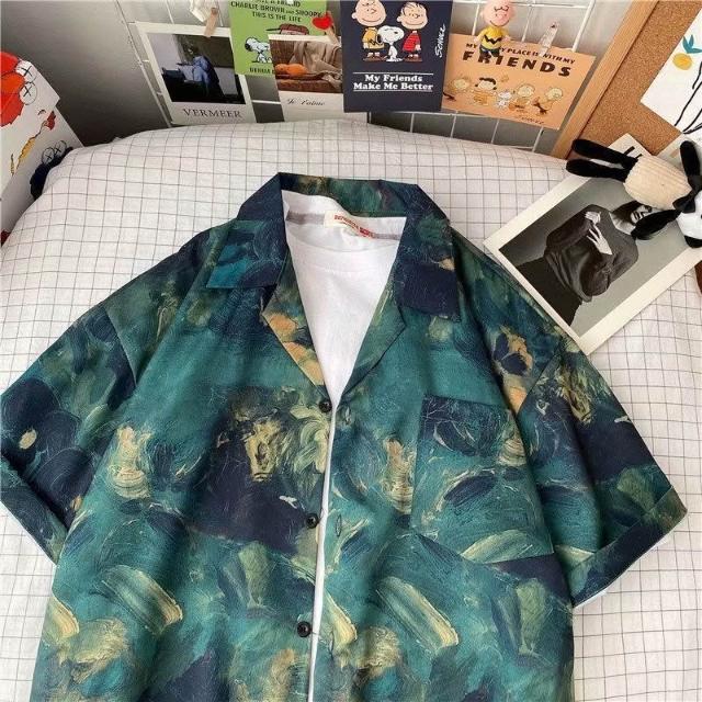 滿意優選日系潮流大碼短袖襯衫男生胖子新款寬鬆慵懶風學生帥氣青少年襯衣