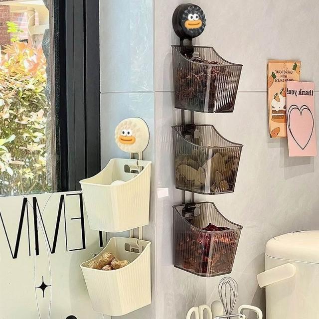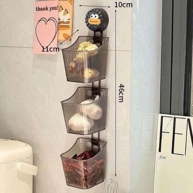滿意優選吸盤廚房蔥薑蒜收納盒壁掛式置物架生薑大蒜調料收納筐免打孔掛籃