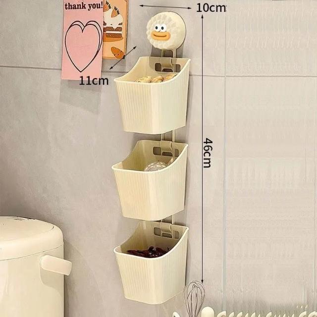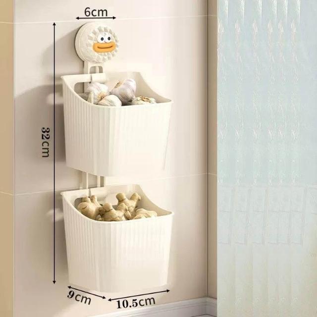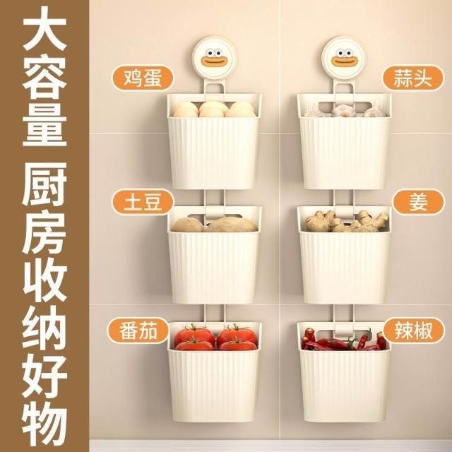 滿意優選吸盤廚房蔥薑蒜收納盒壁掛式置物架生薑大蒜調料收納筐免打孔掛籃