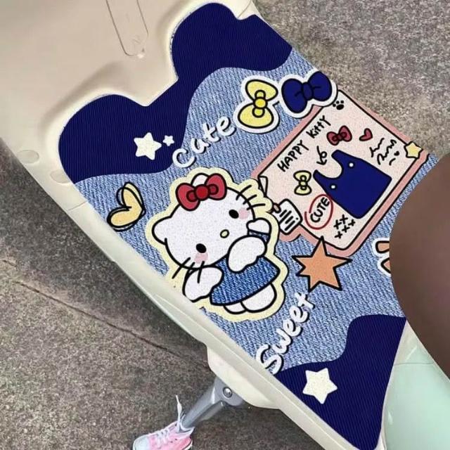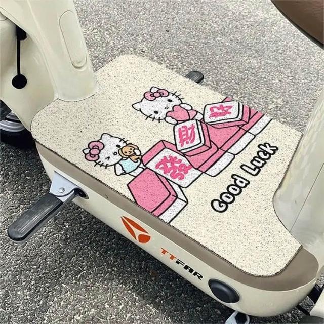 小滿優選卡通可愛Hello Kitty絲圈電動車腳墊耐臟通用自由剪裁防滑踏闆墊