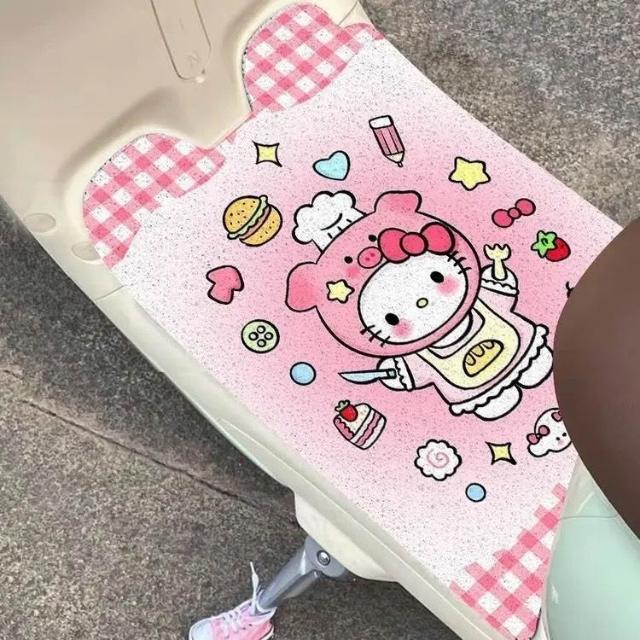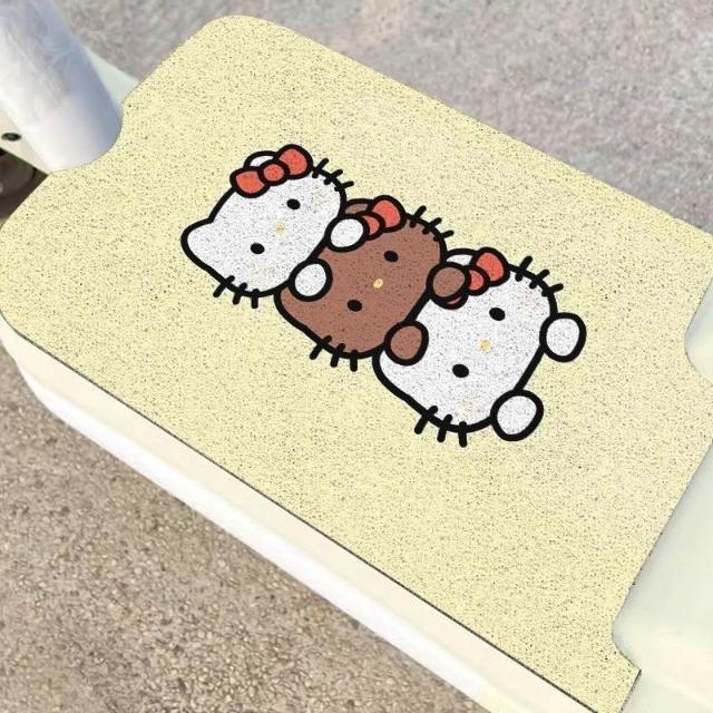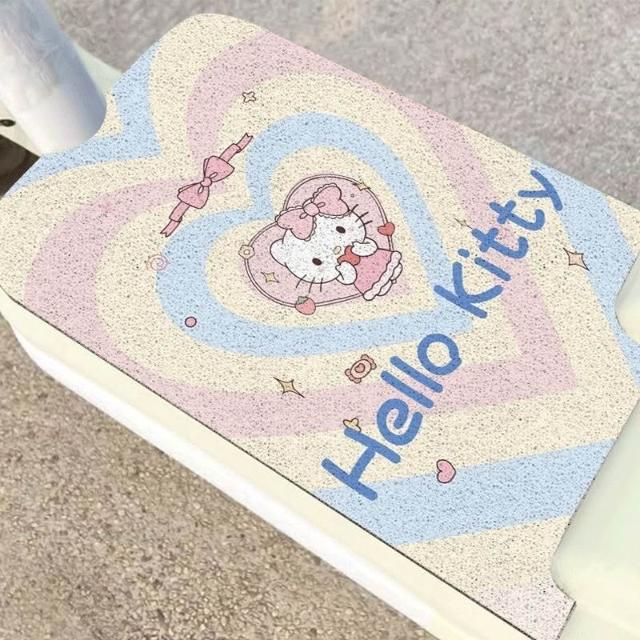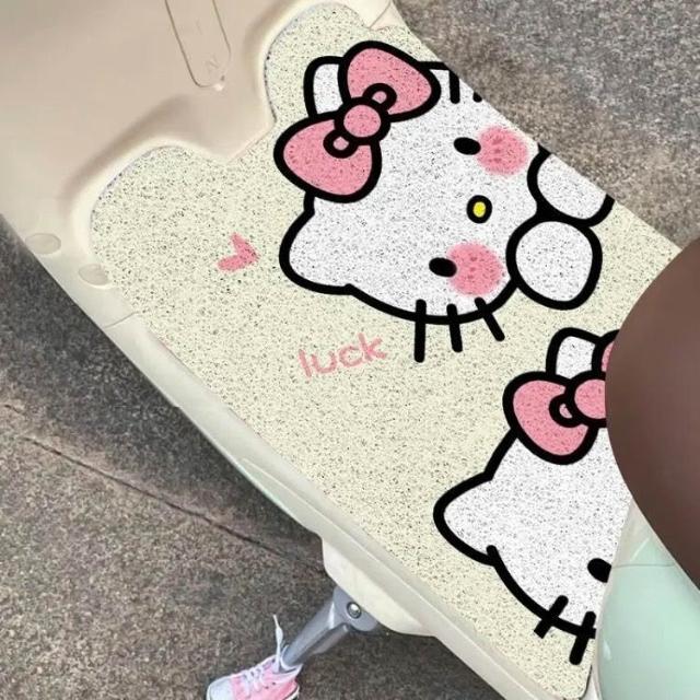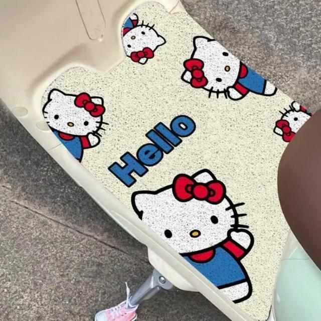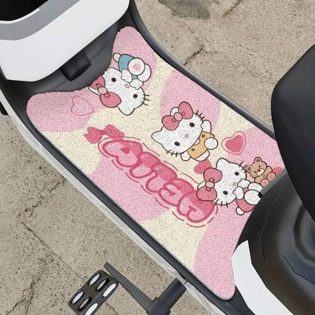 小滿優選卡通可愛Hello Kitty絲圈電動車腳墊耐臟通用自由剪裁防滑踏闆墊