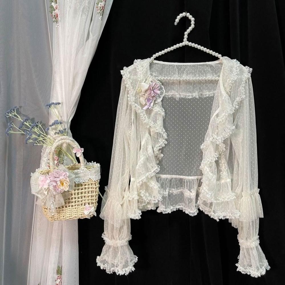【小滿優選】洛麗塔花牆系列蕾絲開衫女百搭甜美花邊外搭優雅夏季清透點紗罩衫