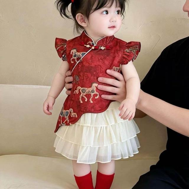 秋秋優選新款女童旗袍連衣裙夏裝兒童中國風漢服公主裙一週歲寶寶禮服夏季