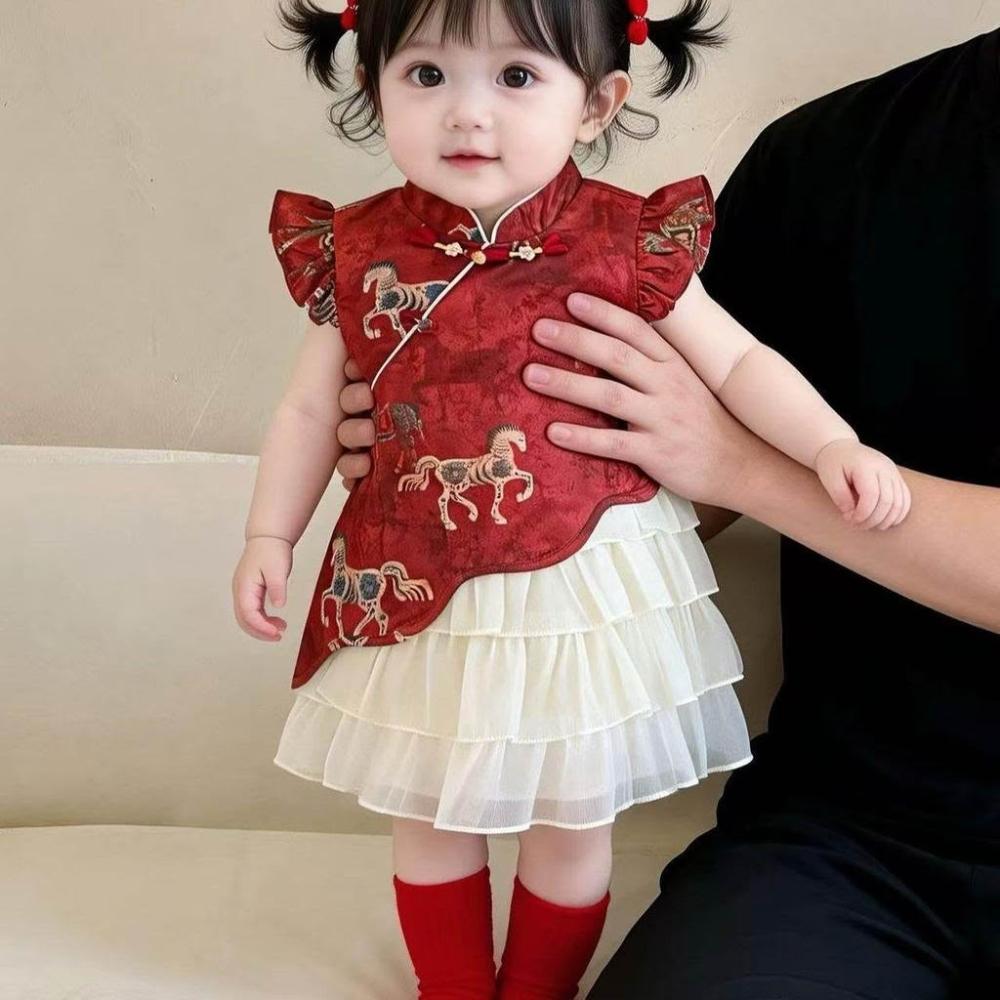 秋秋優選新款女童旗袍連衣裙夏裝兒童中國風漢服公主裙一週歲寶寶禮服夏季