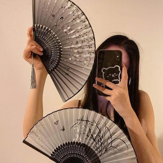 秋秋優選中國風摺疊小扇子隨身攜帶古風漢服古裝舞蹈新中式夏天黑色竹扇女