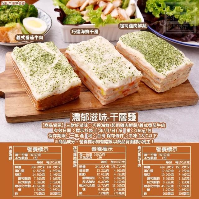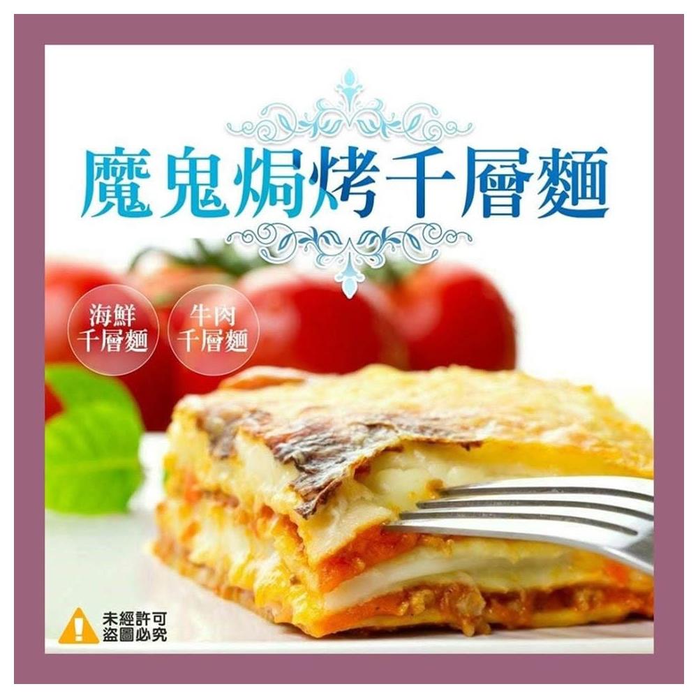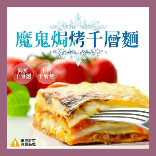 極鮮配台灣製 魔鬼焗烤千層麵任選260~270g±10%/包(巧達海鮮/義式番茄牛肉) 千層 焗烤