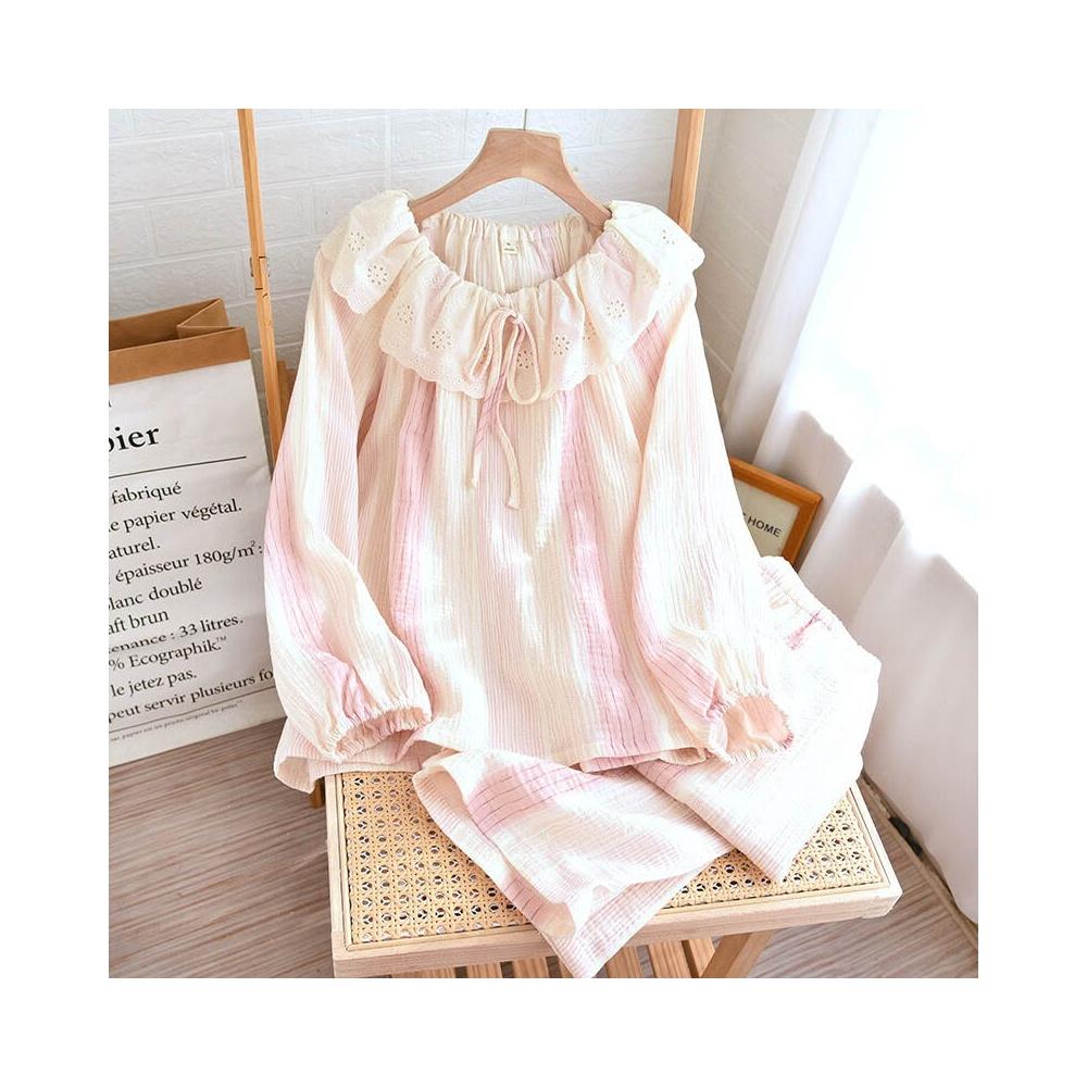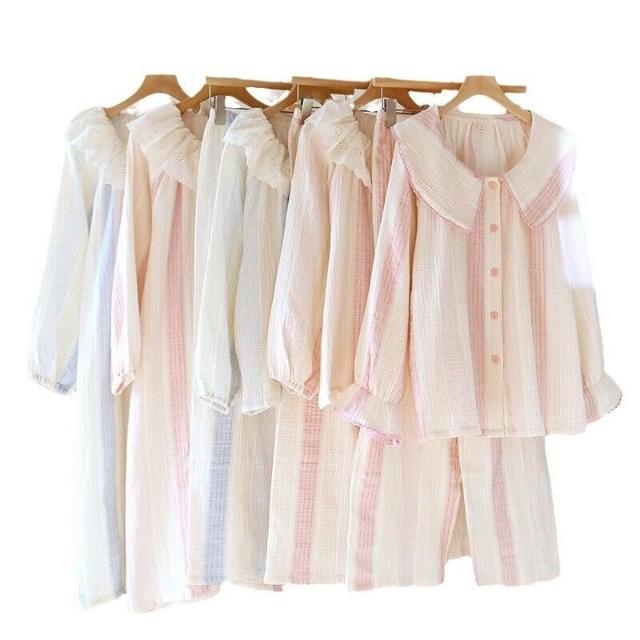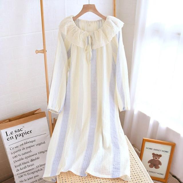 睡衣家居服 甜美可愛公主風荷葉邊長款睡裙長袖睡衣女士春秋季2024新款家居服