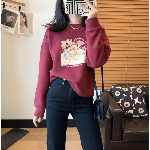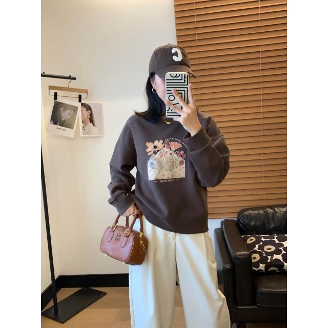 熱銷上衣免運 秋日來信~設計感小眾上衣立體花朵刺繡圓領套頭衛衣女秋新G092313